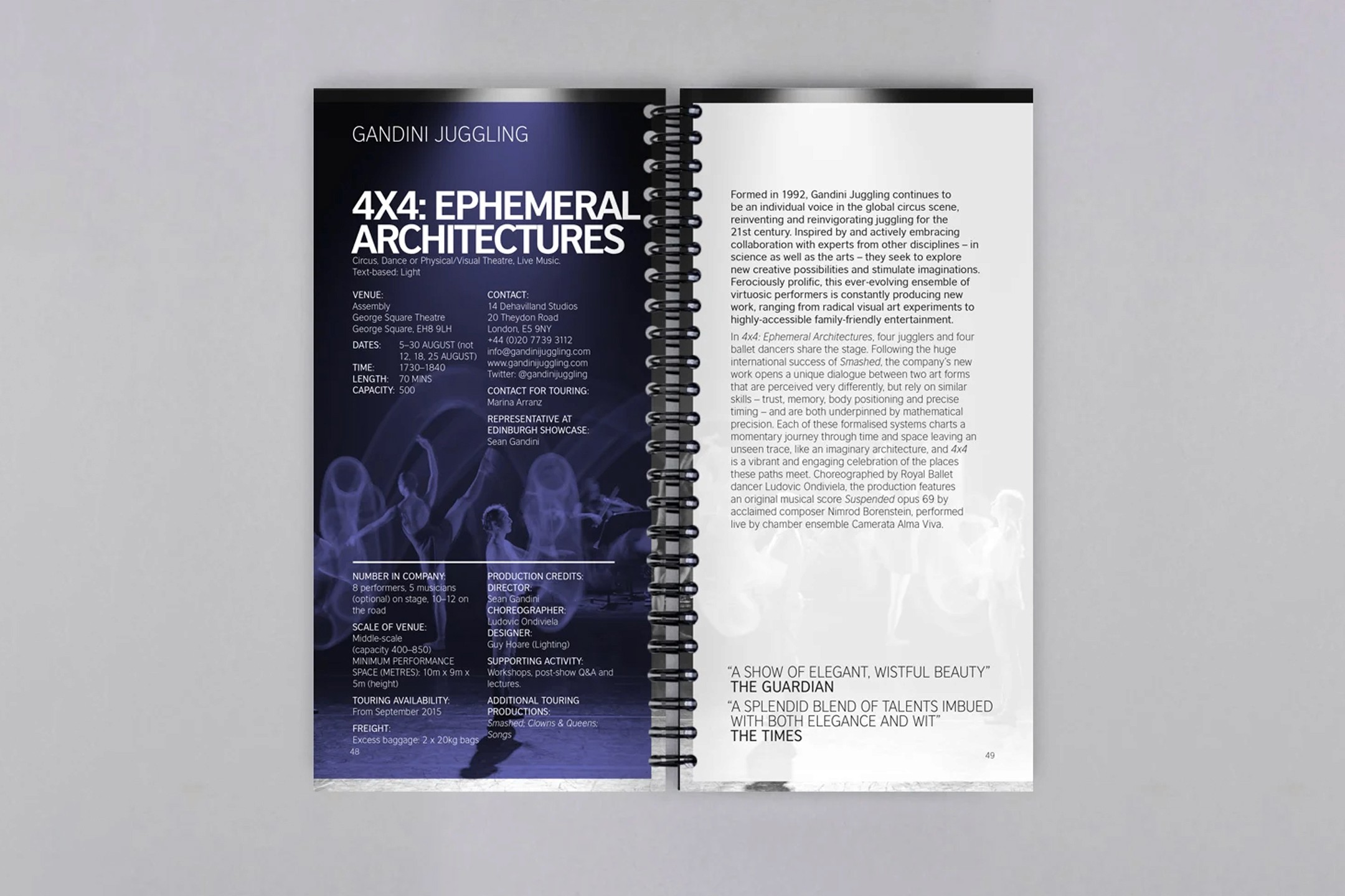 The Edinburgh Showcase 2015 printed programme turned out beautifully. The cover grabbed attention from the first glance, and those interior spreads guided people through the day with clarity and style, making the whole event feel more put-together and special. Quietly elevating the showcase. We earned client approval, and reminded everyone why thoughtful print still matters in live events.