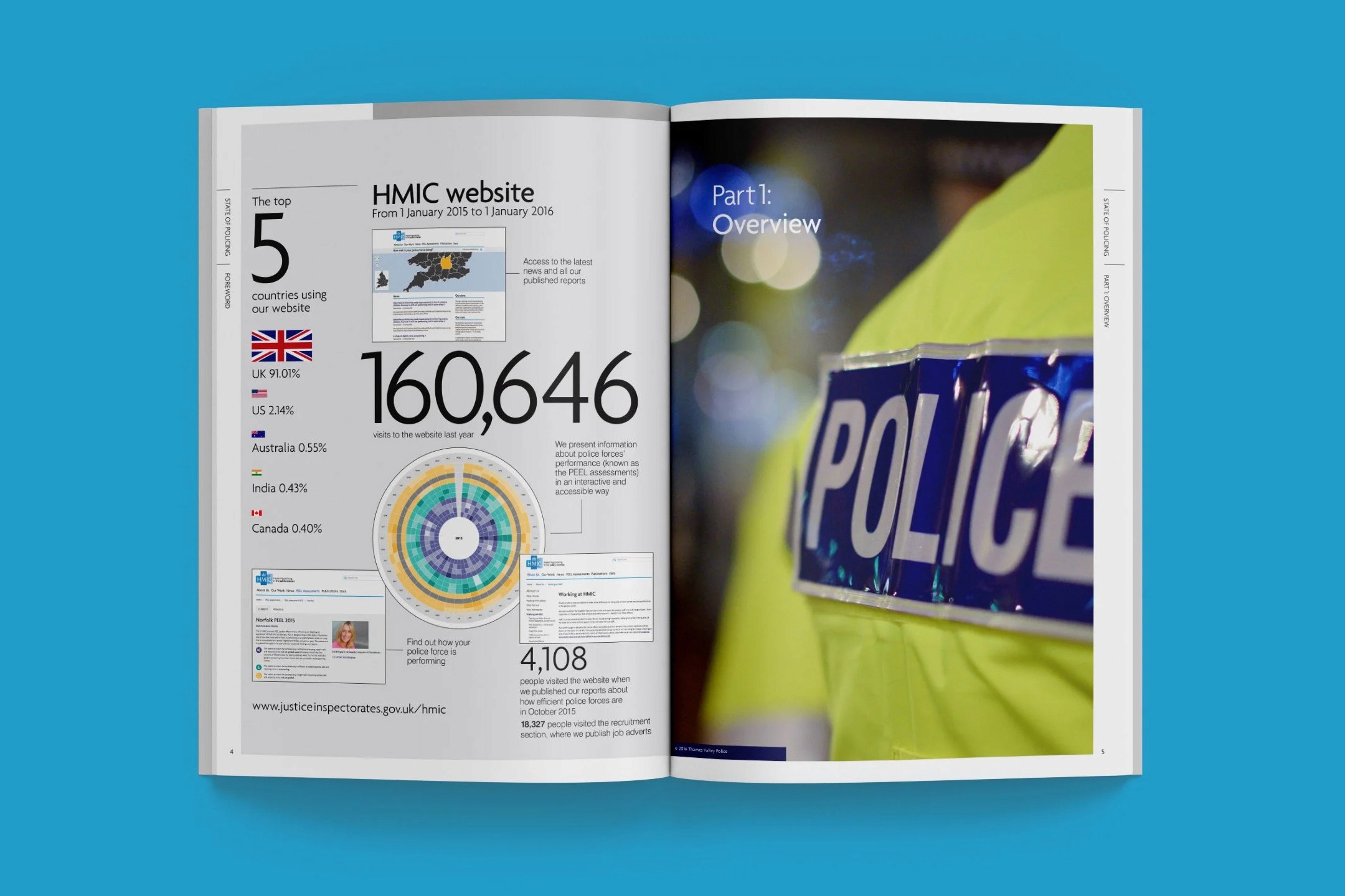 Creating a credible, high-stakes annual report on UK policing that balanced dense information, regulatory authority, and visual clarity for diverse stakeholders including government, police forces, and the public.
