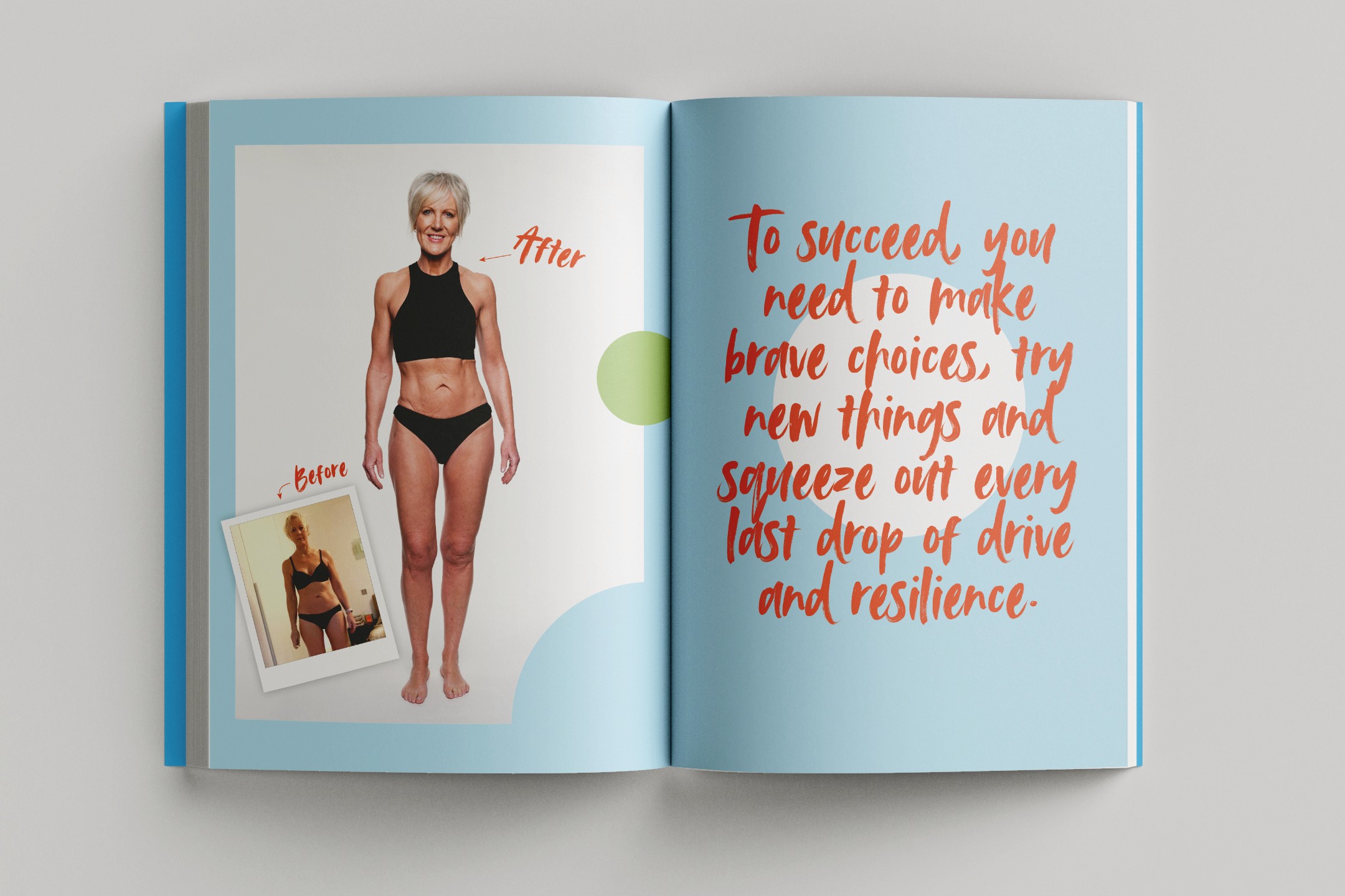 I created a cover that used strong typography and a confident colour palette to instantly convey strength and transformation. Inside is a clear hierarchical layout. Generous margins for notes, distinct section starters, pull quotes that popped, and subtle graphic elements (like icons or dividers) to break up text and highlight key mindset shifts. The design stayed consistent across chapters, made exercises easy to follow, and kept the tone motivational and human.