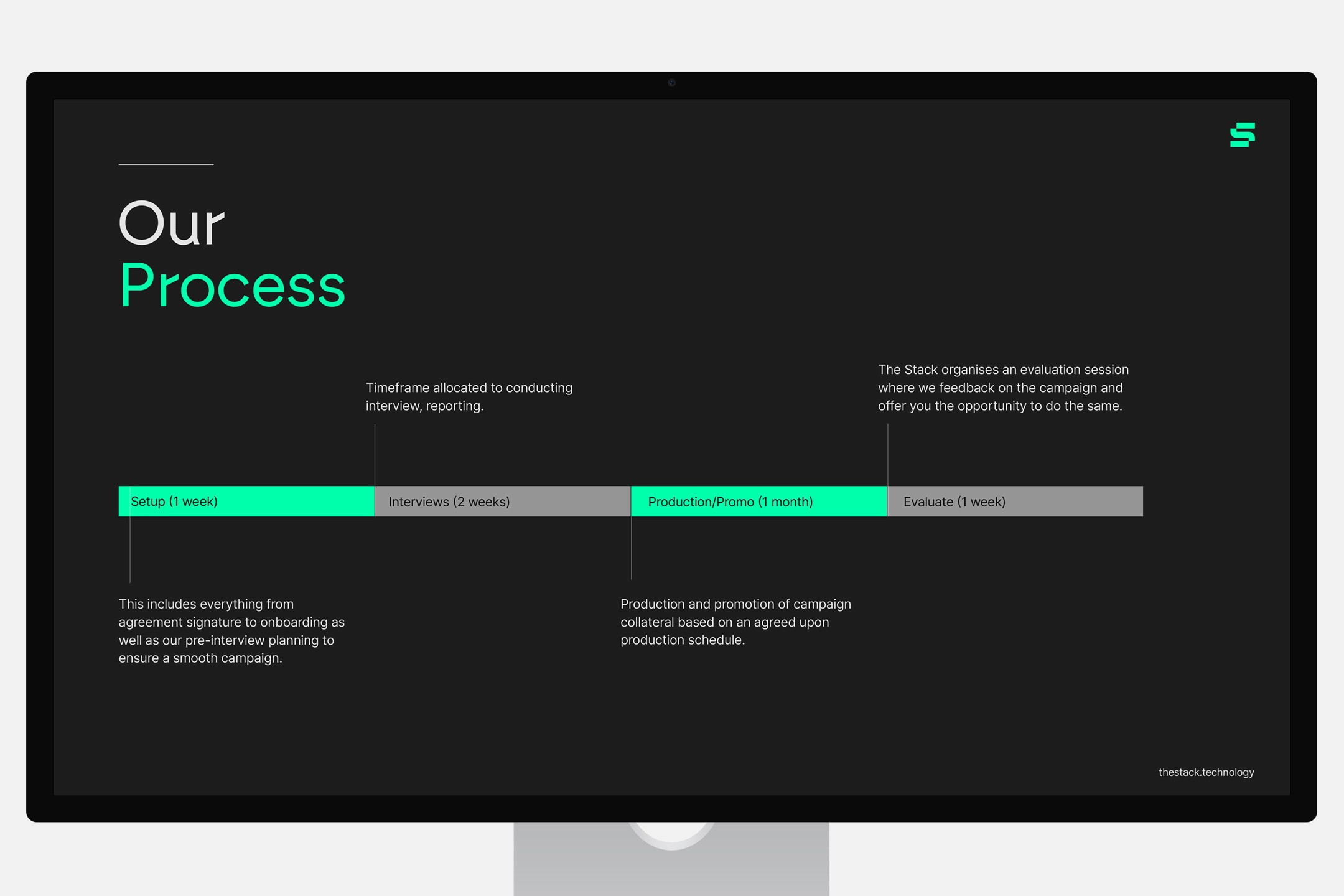 The deck stands as a polished, persuasive showcase that matches The Stack’s editorial style and their audience.