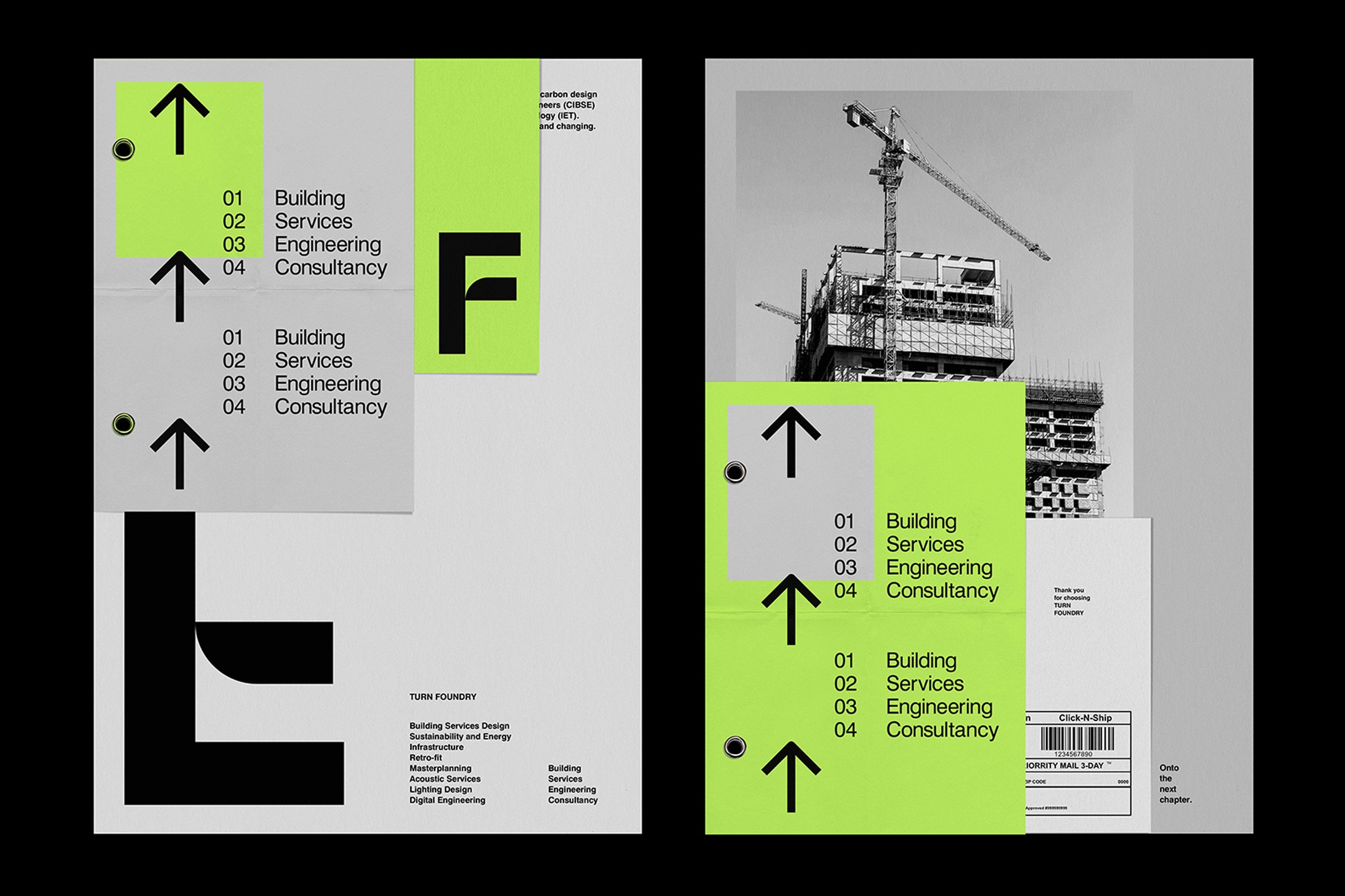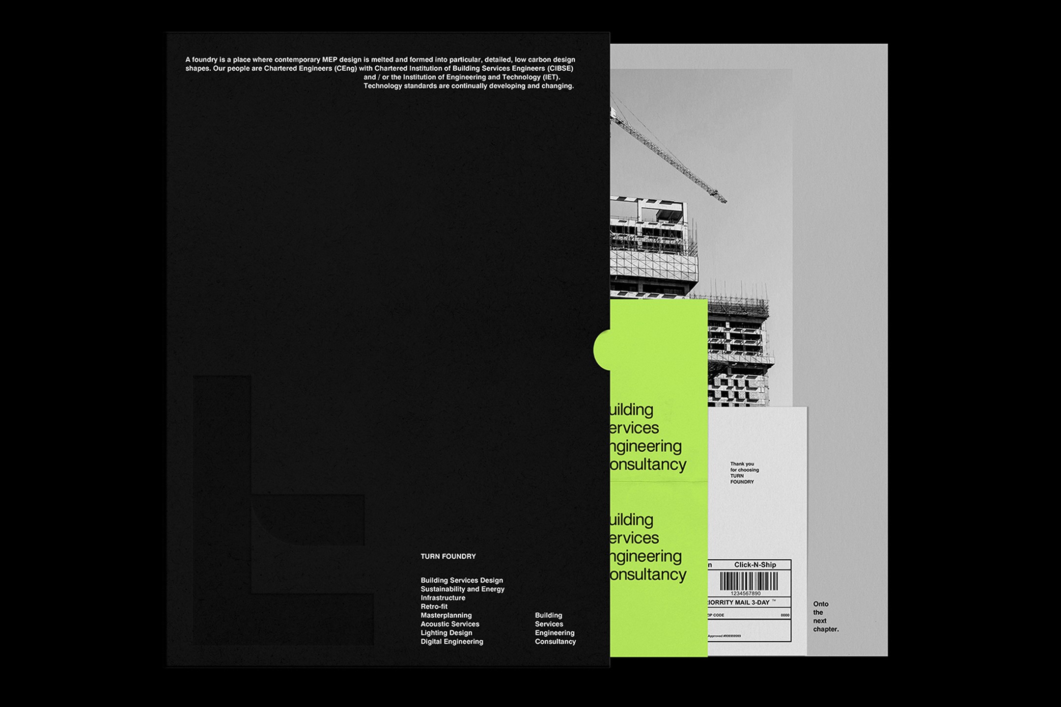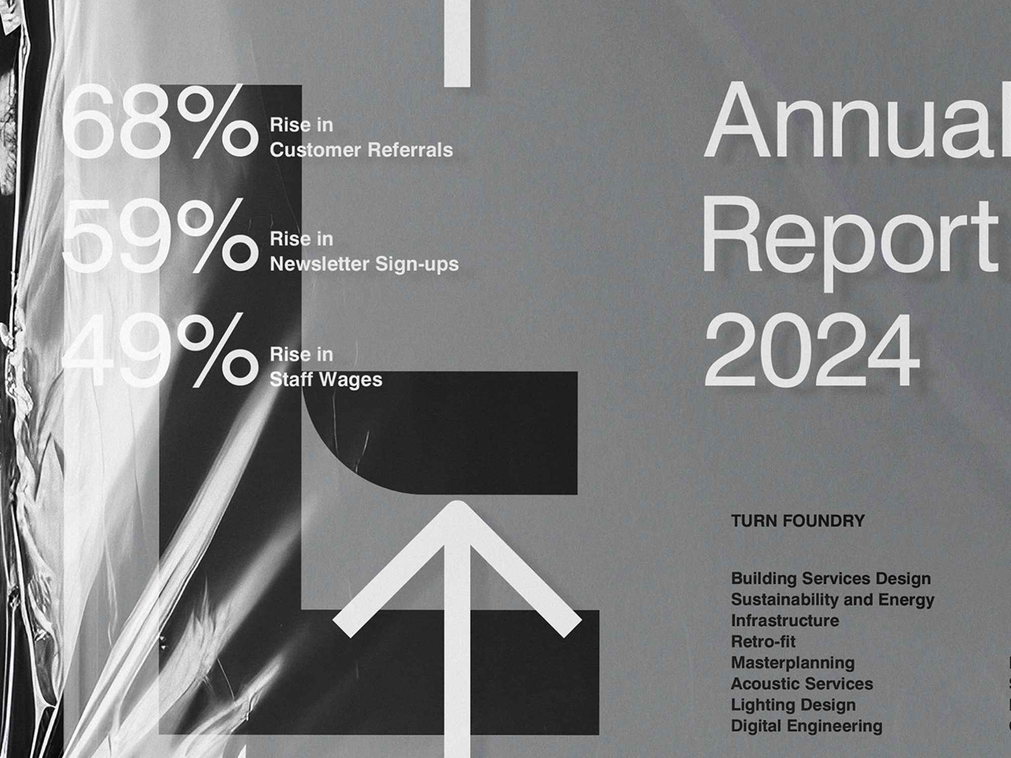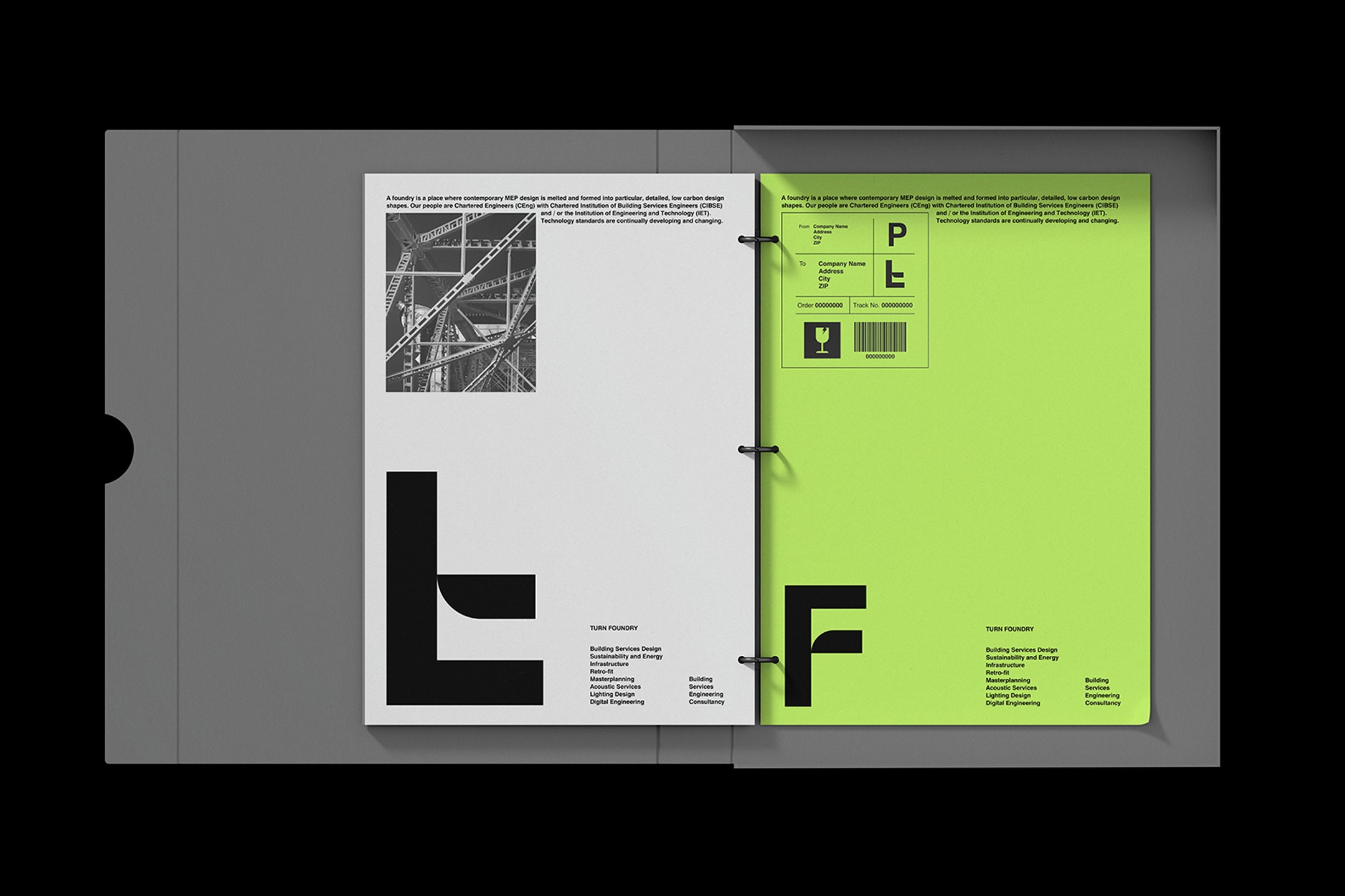 Turn Foundry brings together precise mechanical/electrical engineering, architectural creativity, and a strong focus on sustainable, low-carbon systems for buildings. The challenge was crafting an identity and report that genuinely reflected that unique "fusion" approach. It needed to look professional and credible to clients in construction and design. Also communicate their expertise and values clearly. Handle data and tell stories effectively. Plus stand out in a technical industry whilst remaining elegant, restrained, and memorable. No easy feat.