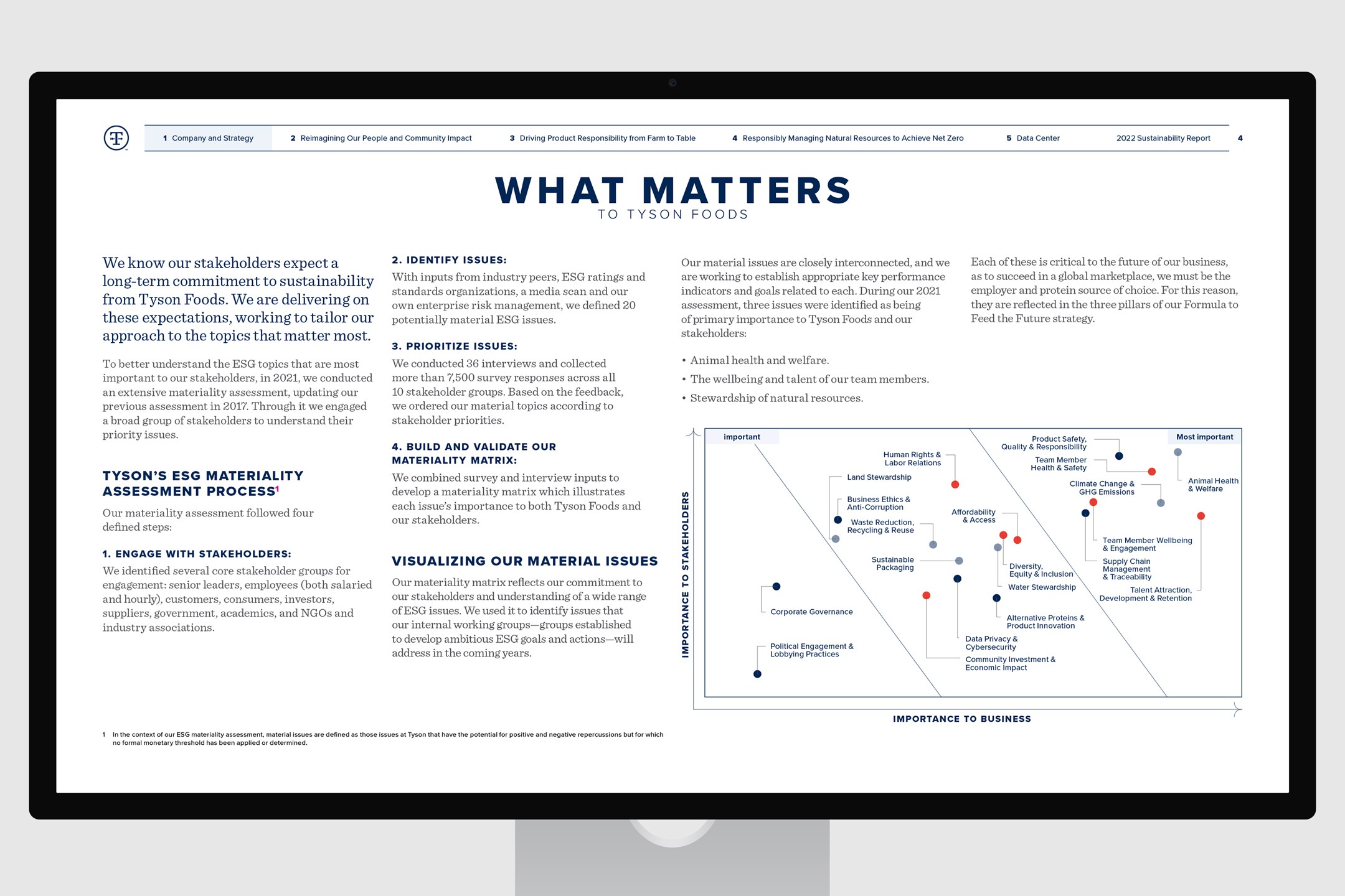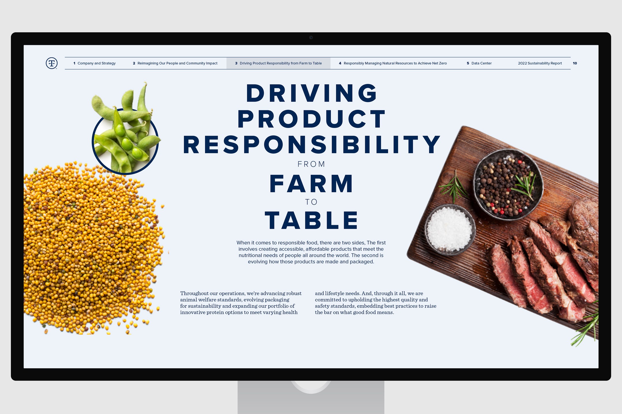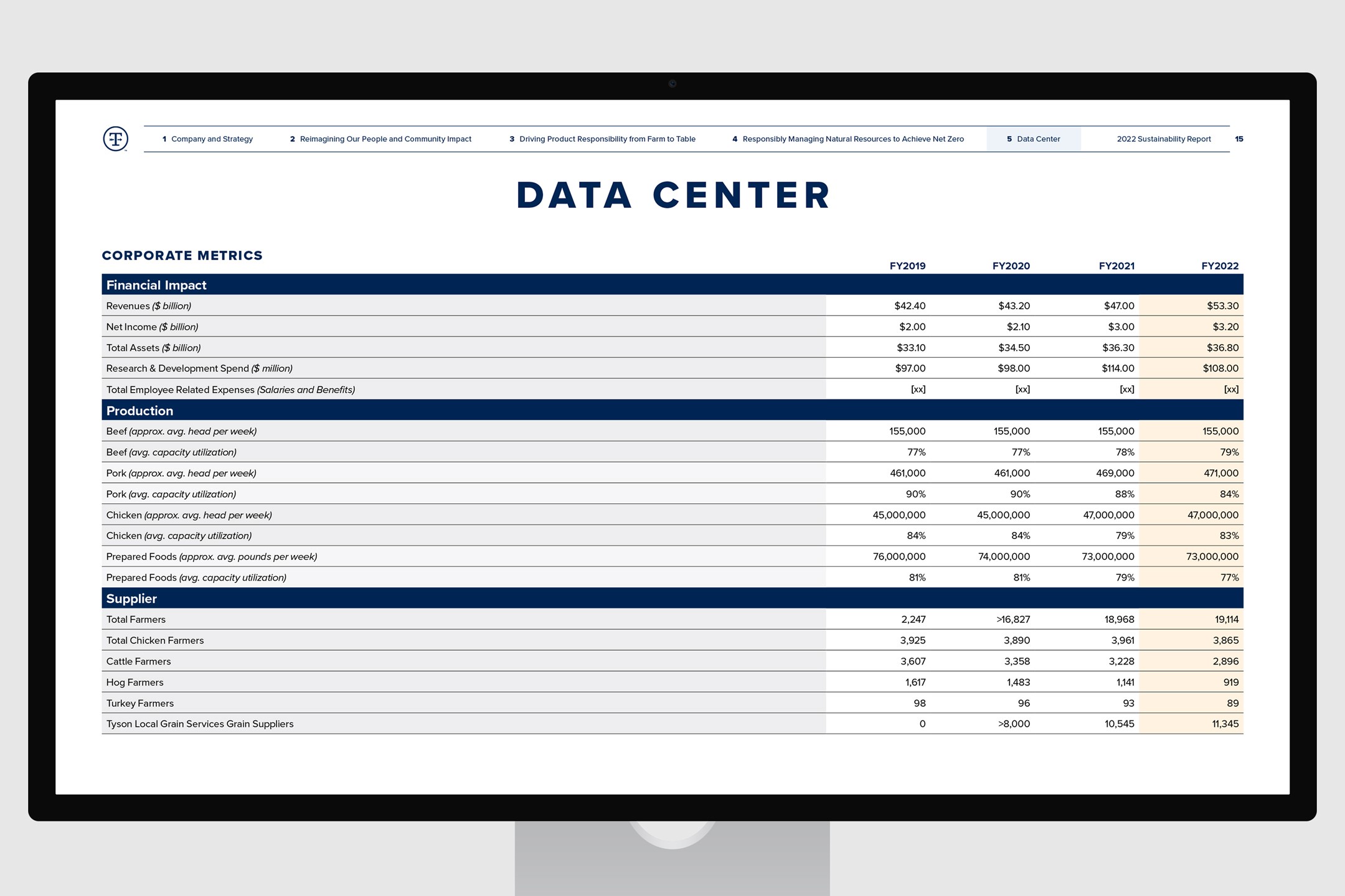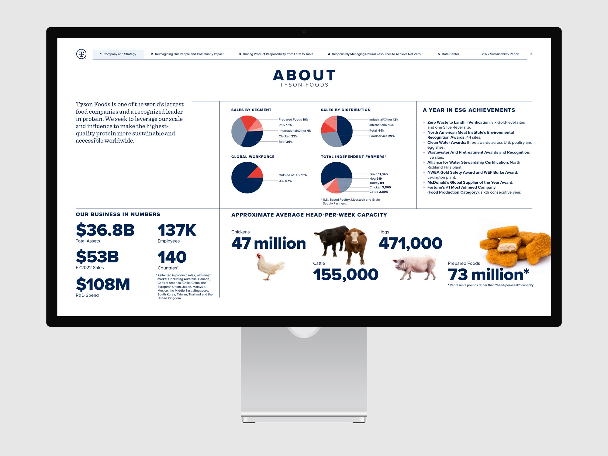 All whilst staying visually consistent with Tyson’s corporate identity and avoiding fatigue from dense tables and long text blocks.