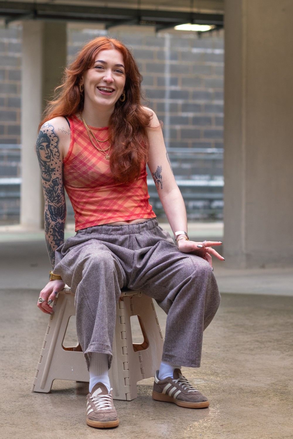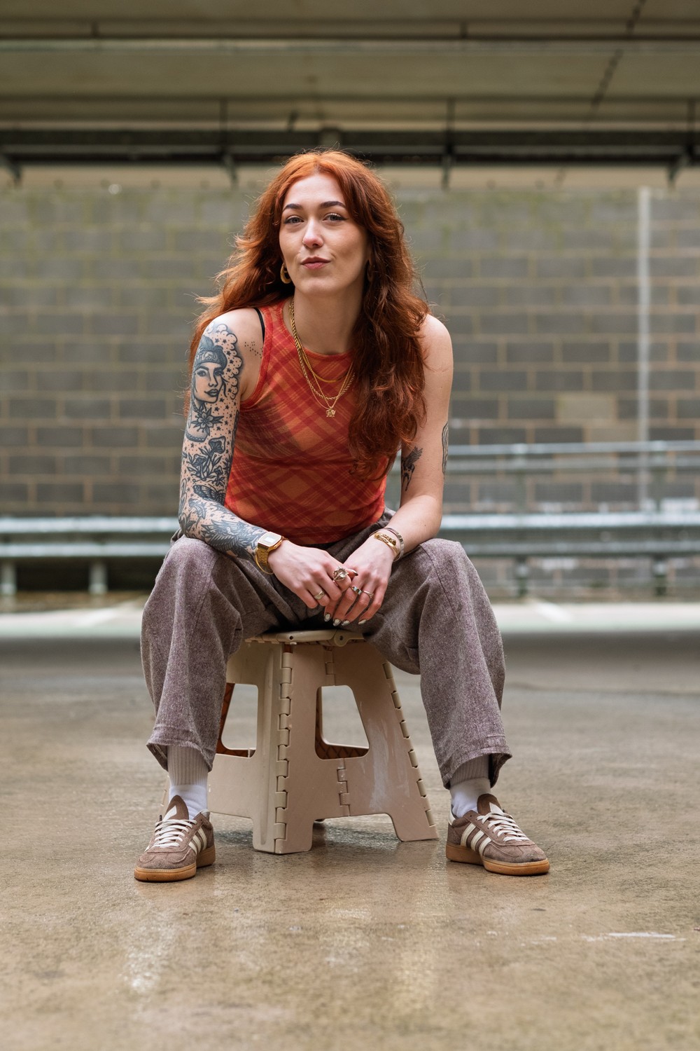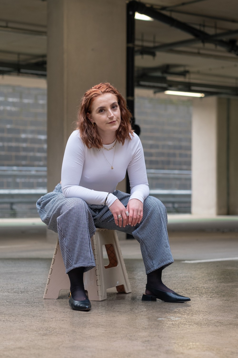 We rolled up to this multi-storey car park in Swansea, wind howling off the bay, everything grey and damp. Amy gave me a quick "Really?" look, but after years of chasing candid moments in East London's concrete underpasses and alleyways, where light sneaks in unexpectedly and you have to work fast, I knew this spot had potential.