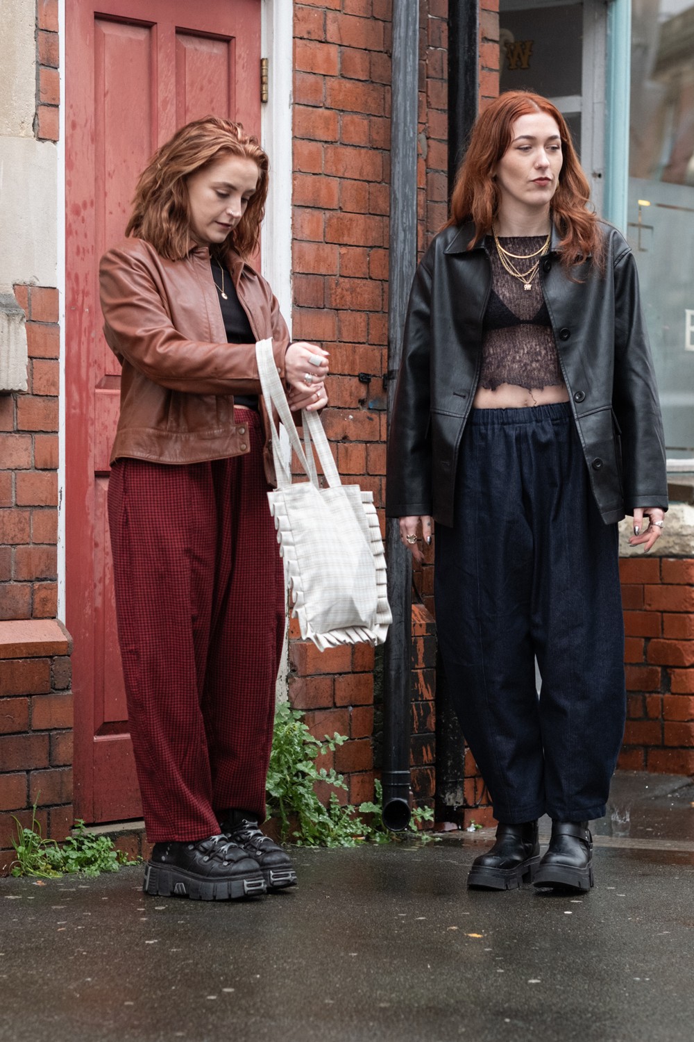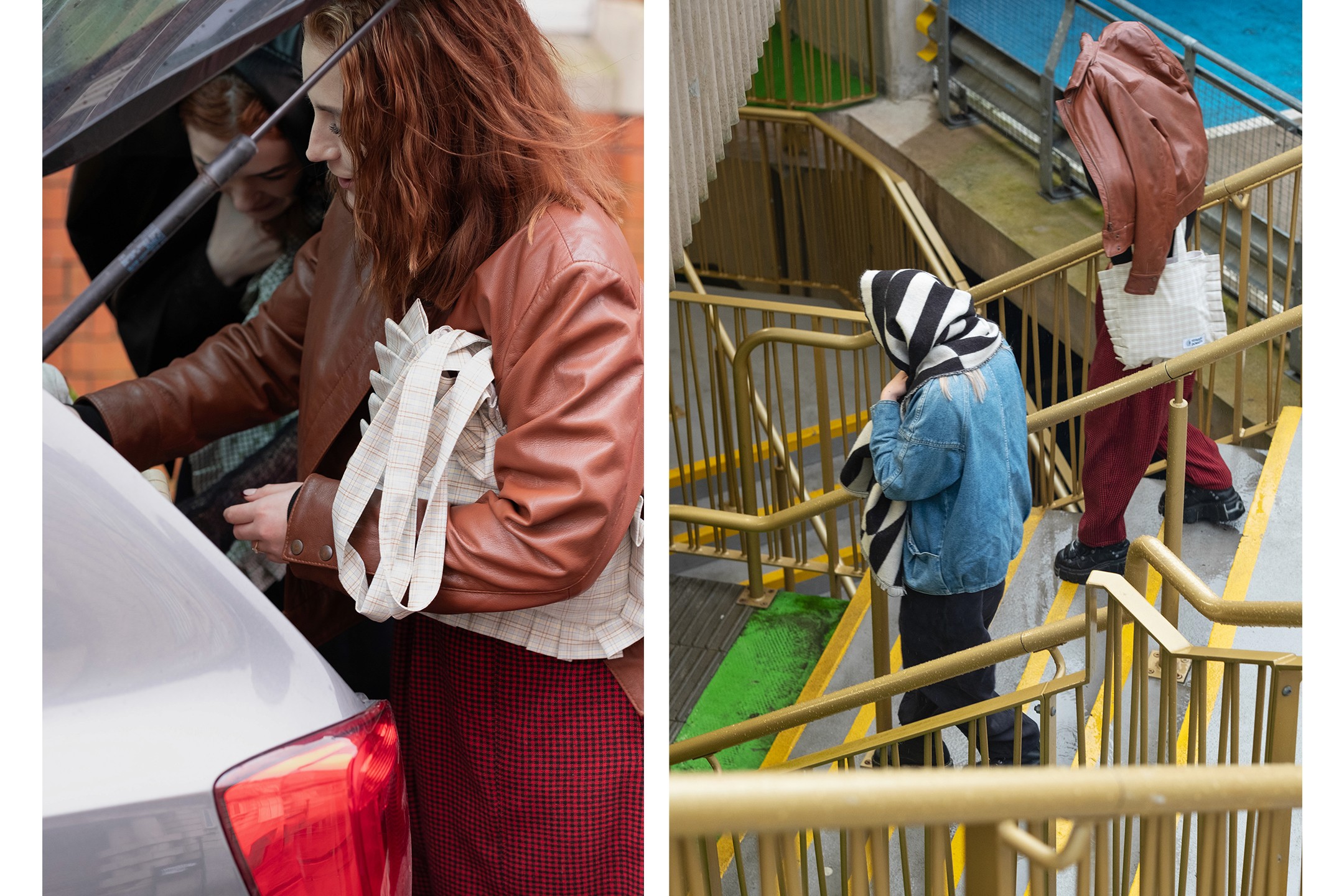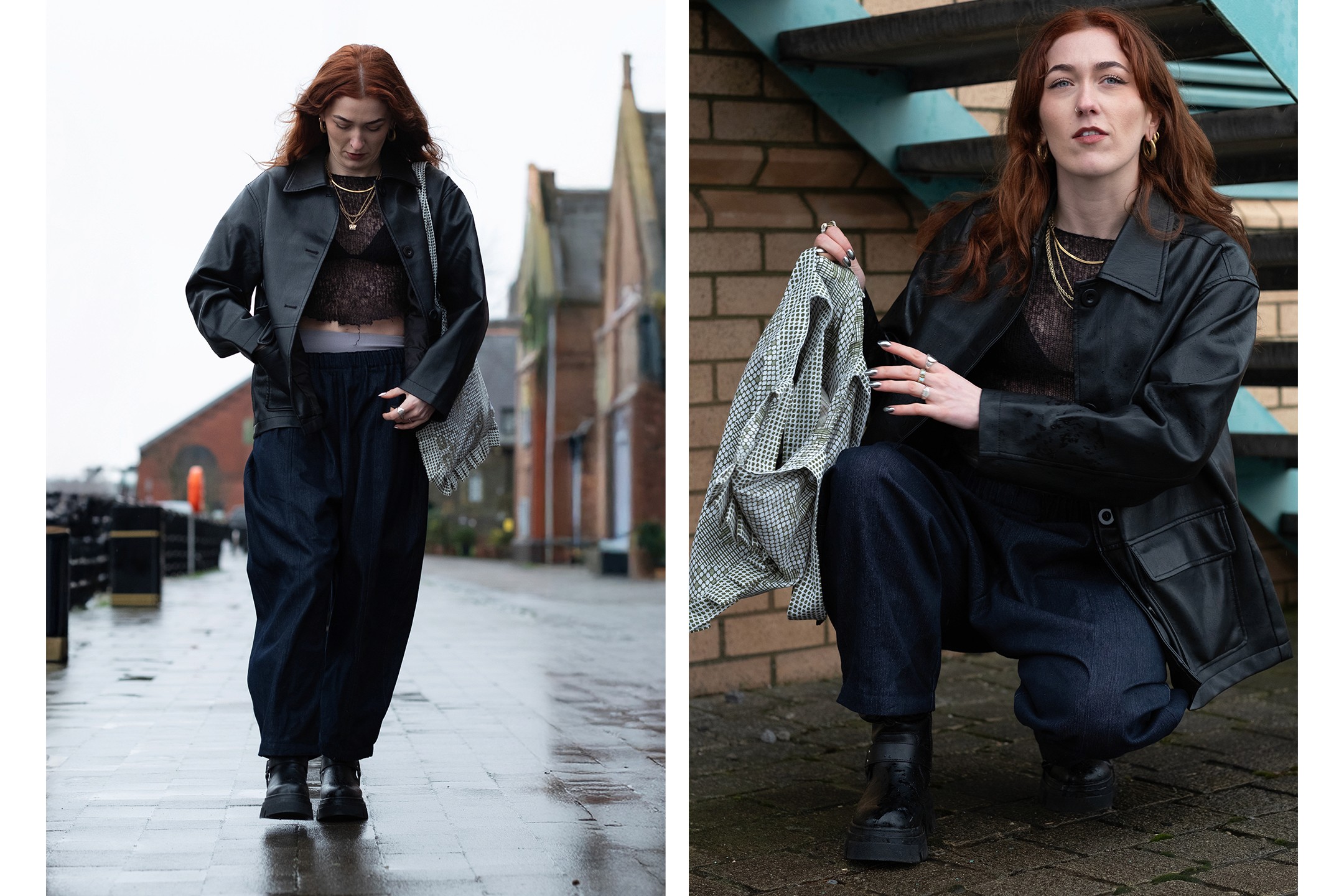 Martha and Teigan stepped in wearing the first outfits. They moved naturally, laughing about how random we looked to passing drivers, while I shot handheld, documentary-style. Loose framing, real expressions, no stiff posing. The muted light let the textures and details shine, quiet confidence in the clothes Amy created.