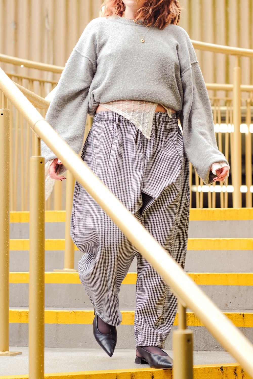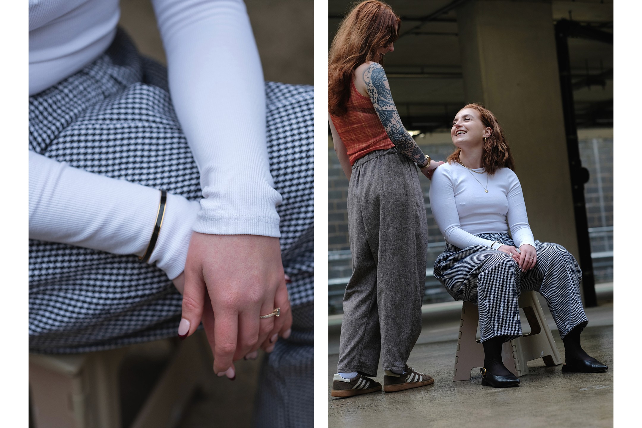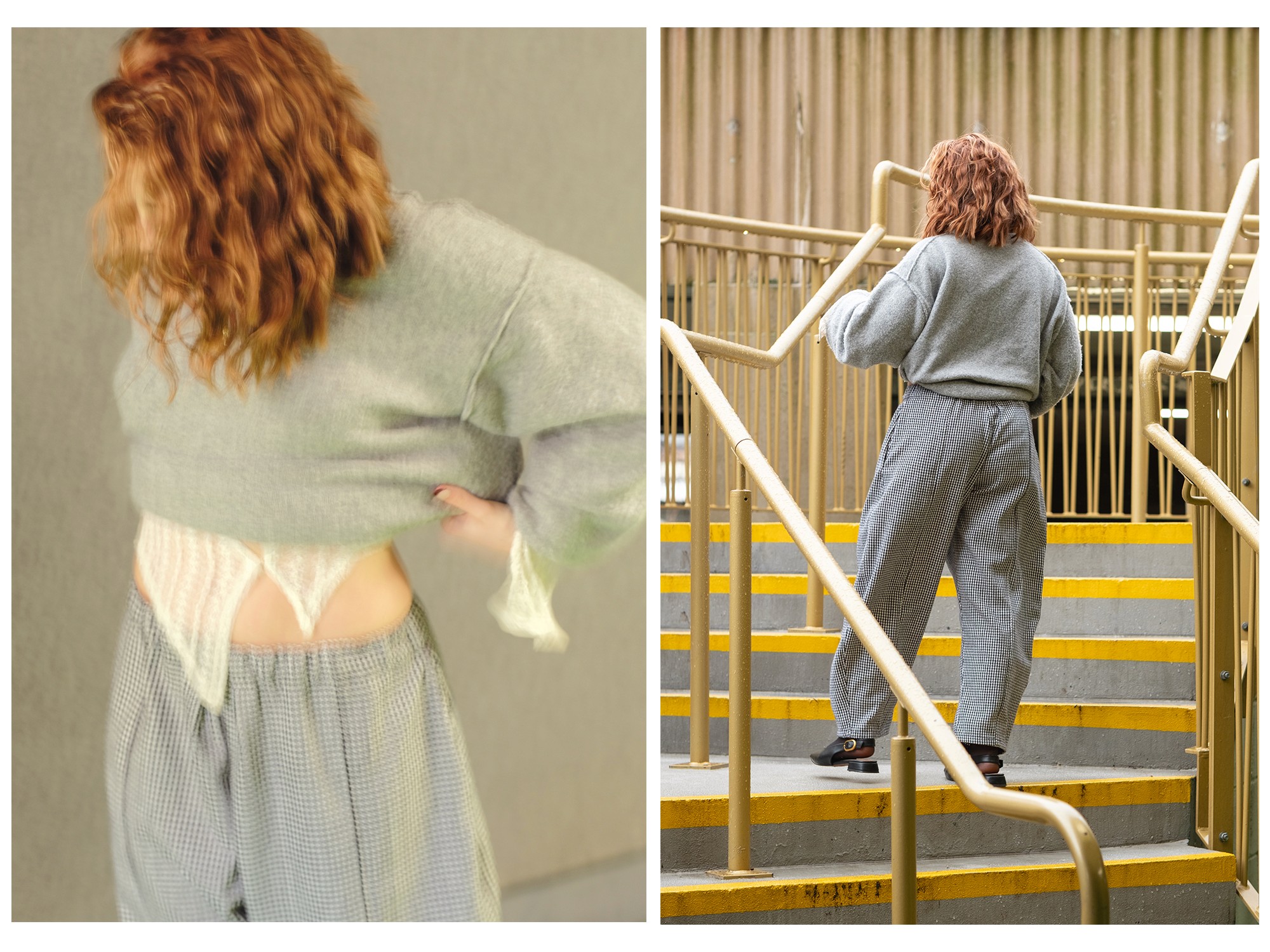 Martha and Teigan stepped in wearing the first outfits. They moved naturally, laughing about how random we looked to passing drivers, while I shot handheld, documentary-style. Loose framing, real expressions, no stiff posing. The muted light let the textures and details shine, quiet confidence in the clothes Amy created.